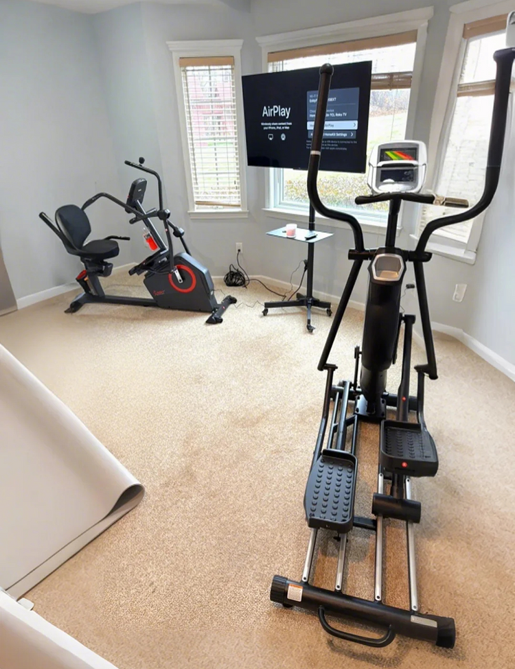 Home Gym which has become our favorite spot in our place! My 8 year old daughter and 5 year old son love coming in daily and “working out” even they don’t have to!