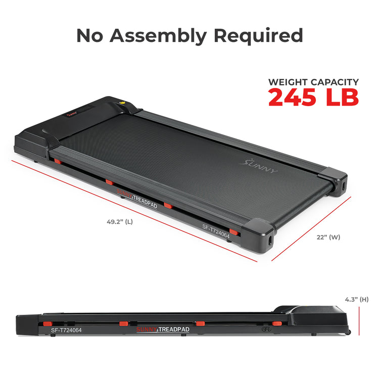 The Sunny Health & Fitness Treadpad 100 Smart Walking Treadmill (SF-T724064) is designed for effortless home and office workouts. With advanced Wi-Fi and Bluetooth connectivity, seamlessly sync to your smart TV and the SunnyFit App for real-time tracking, guided workouts, and 10,000+ global routes. The compact, space-saving design includes built-in transportation wheels, making it easy to move and store.